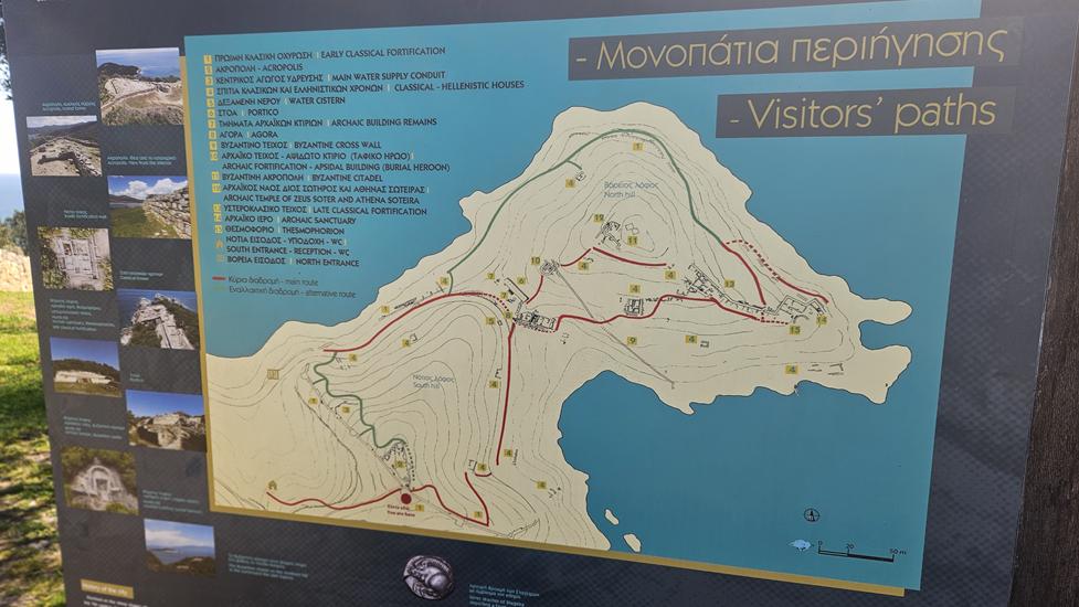 Infobox: Vor der antiken Anlage in Stageira ist ein kostenloser Tagesparkplatz. Der Eintritt in die antike Stätte ist ebenfalls kostenlos. Die Besichtigung dauert etwa 2h. Nach Olympiada sind gleich mehrere Übernachtungsgelegenheiten vorhanden.