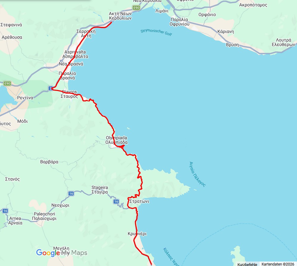 Strecke: Stageira– 60 km bis 16 Grad, sonnig