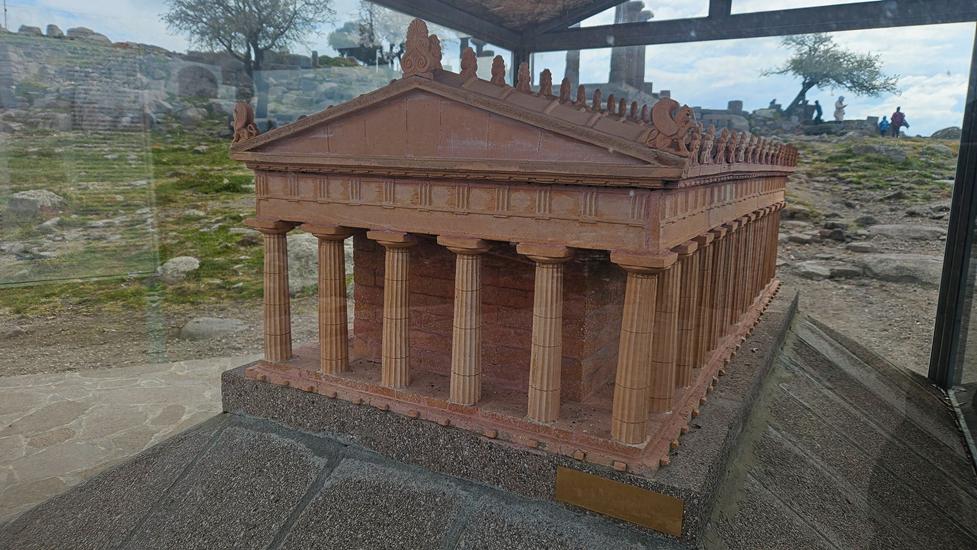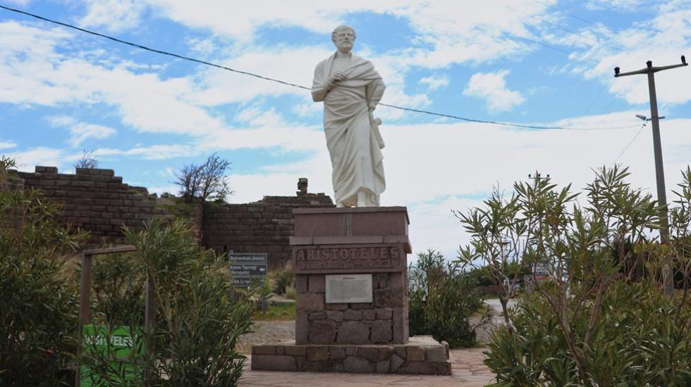 Infobox: Eintritt Assos 11.-€. Camping- und Parkplatz rechts an der Aristoteles Statue. Links hoch an der Statue kostenloses Parken oder entlang der Straße. Übernachtungsmöglichkeiten ca. 5km weiter, unten am Strand. Außerhalb der Saison kostenlos, ansonsten 8-10.-€. Oder Campingplatz. Die Reisenden im Omnibus besuchen lediglich den Tempel.