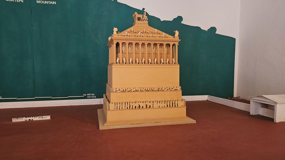 Bodrum ist insofern bekannt, weil die Stadt mit dem Mausoleum von Halikarnassos eines der sieben Weltwunder der Antike beherbergt. Wir wußten zuvor, dass von dem Mausoleum nicht viel zu sehen sein wird. Auf dem Areal befand sich ein Gebäude in dem ein englischer Film über Ephesos und Bodrum zu sehen war. Zusätzlich stand ein Model vom Mausoleum im Raum. Vor dem Gebäude waren Steine mit Reliefs zu bestaunen. Auf dem Gelände sah man nur noch die Ausmaße vom Mausoleum und wo einst das Grabmal angesiedelt war.