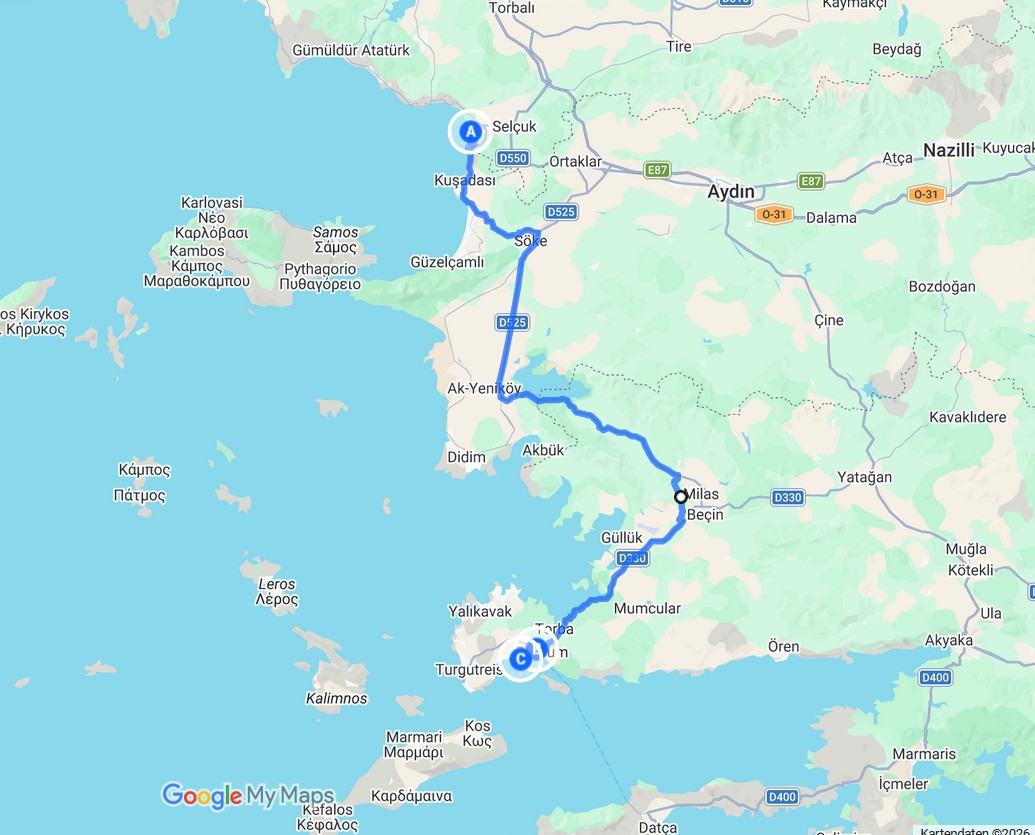 Strecke: Bodrum– 165 km, 18 Grad wechselhaft