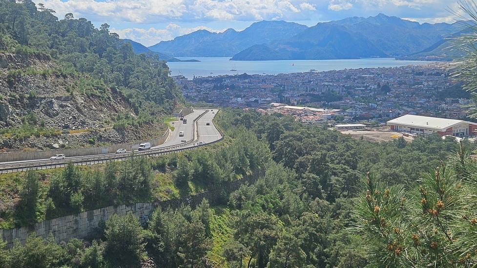 Knidos liegt am Ende auf der Halbinsel Datca. Von Bodrum aus erreicht man Datca mit der Fähre, oder wählt den längeren Weg über das Land. Bei sonnigem Wetter nahmen wir den längeren Landweg und sollten es nicht bereuen. Die Fahrt ging durch eine tolle Berglandschaft. In Milas wird im großen Stil Gestein abgebaut, dementsprechend war viel Staub in der Luft. In Mugla wiederum befindet sich eine große Universität. In Marmaris vor der Halbinsel Datca kann die Fähre zum nahen Rhodos genommen werden.