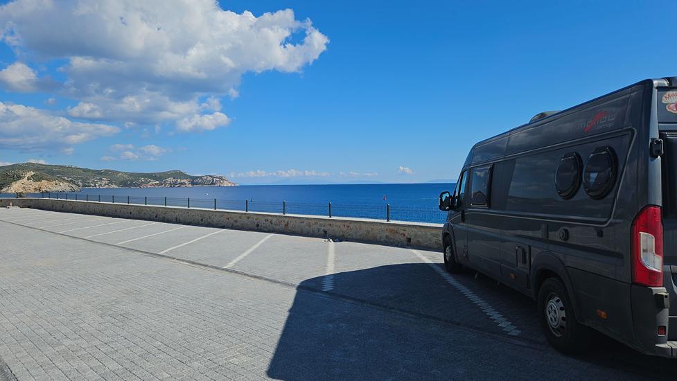 Der Ducato hatte heute viel zu tun. Die Fahrt von Bodrum nach Mugla war schon geprägt durch steile Bergstraßen. Nach Marmaris wechselten sich die Fahrbedingungen ab. So ging es öfters steil nach oben, dann wieder nach unten. Manchmal waren die Straßen holprig, dann wieder gut ausgebaut. Der letzte Teil ab Datca bis zum Ziel war heftig. Es war immer holprig und oft sehr eng. An manchen Stellen kam nur ein Auto durch. Ein PKW parkte direkt am Haus und dennoch kamen wir nur mit angelegten Spiegeln und Einweiser vorbei, als der PKW zudem etwas weiterfuhr.