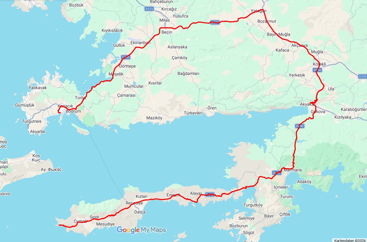 Strecke: Datca– 270 km, 18 Grad wechselhaft