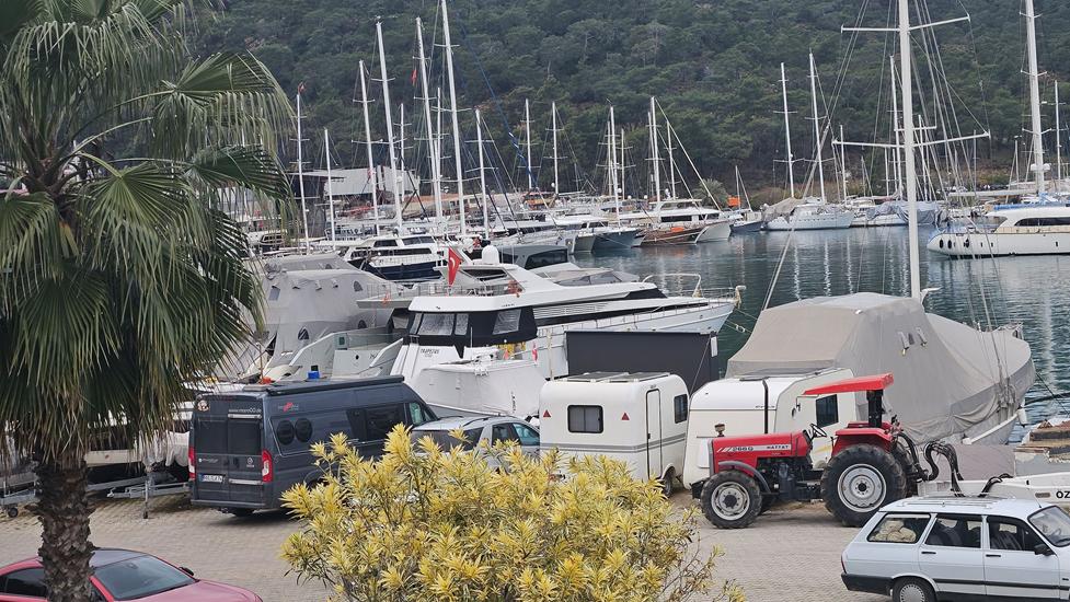 Wir sahen bisher in einigen Häfen sehr viele Boote ankern. In Fethiye waren es nun eine Vielzahl mehr. Unglaublich viele Boote lagen in diesem langgezogenen Hafen oder in Buchten von Fethiye. Überall wo wir hinsahen waren viele oder manchmal auch nur ein paar Schiffe zu entdecken. Die meisten Yachten befanden sich noch im Winterschlaf.