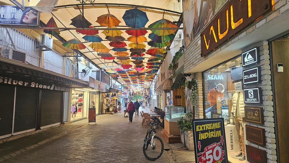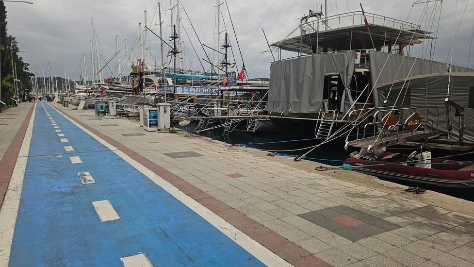 Bei der langen Durchfahrt durch Fethiye ging es quirlig zu. Viele Geschäfte mit viel Verkehr und parkenden Autos in der 2. Reihe erschwerten die lange Anfahrt bis zum Hafen. Es ist schwierig einen Parkplatz an geeigneter Stelle zu finden. Letztlich konnten wir am Yachthafen Park- und Übernachtungsplatz finden.