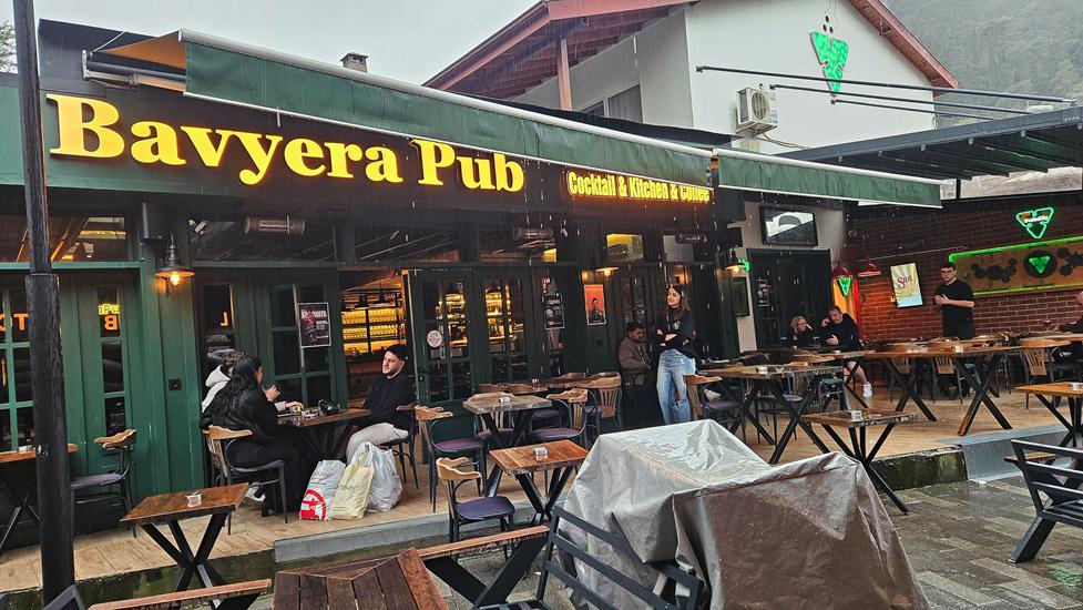 Um diesen überdachten Bereich der sich in der Länge auf zwei Straßen mit ein paar Querstraßen dazwischen erstreckt, haben sich zum Hafen hin viele verschiedene Restaurants und Bier Pubs angesiedelt.