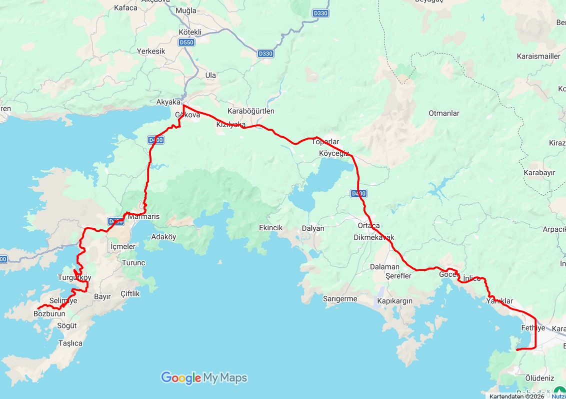 Strecke: Fethiye– 185 km, 17 Grad regnerisch