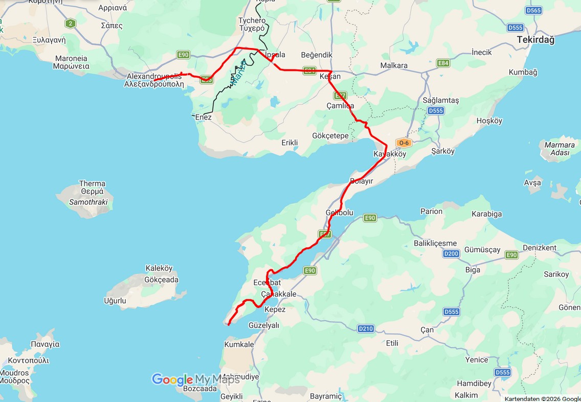 Strecke: Gelibolu – 200 km, 8 Grad, bewölkt