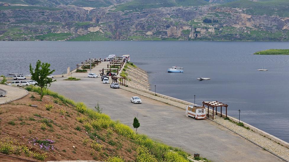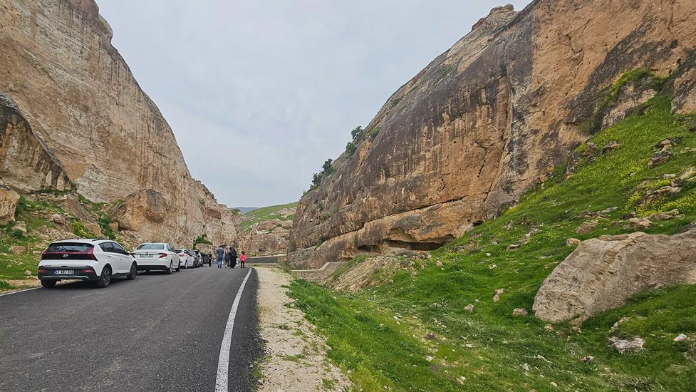 In Hasankeyf angekommen, ging es direkt über die Tigris Brücke auf die andere Seite des Flusses. Hier strandeten wir sehr schnell an einer überfluteten Straße. Der Stausee war anscheinend sehr voll. Über eine seit März eröffnete neu asphaltierte Straße musste eine kurze aber steile Serpentinenstraße bewältigt werden. Ein paar Kilometer verlief die Straße auf einem Plateau, dann hieß es nach unten auf Seehöhe zu fahren. Nur mit Mühe konnten wir einen freien Parkplatz vor der Schlucht ergattern. Viele Einheimische nutzen diese Schlucht für einen ausgedehntes Picknick.