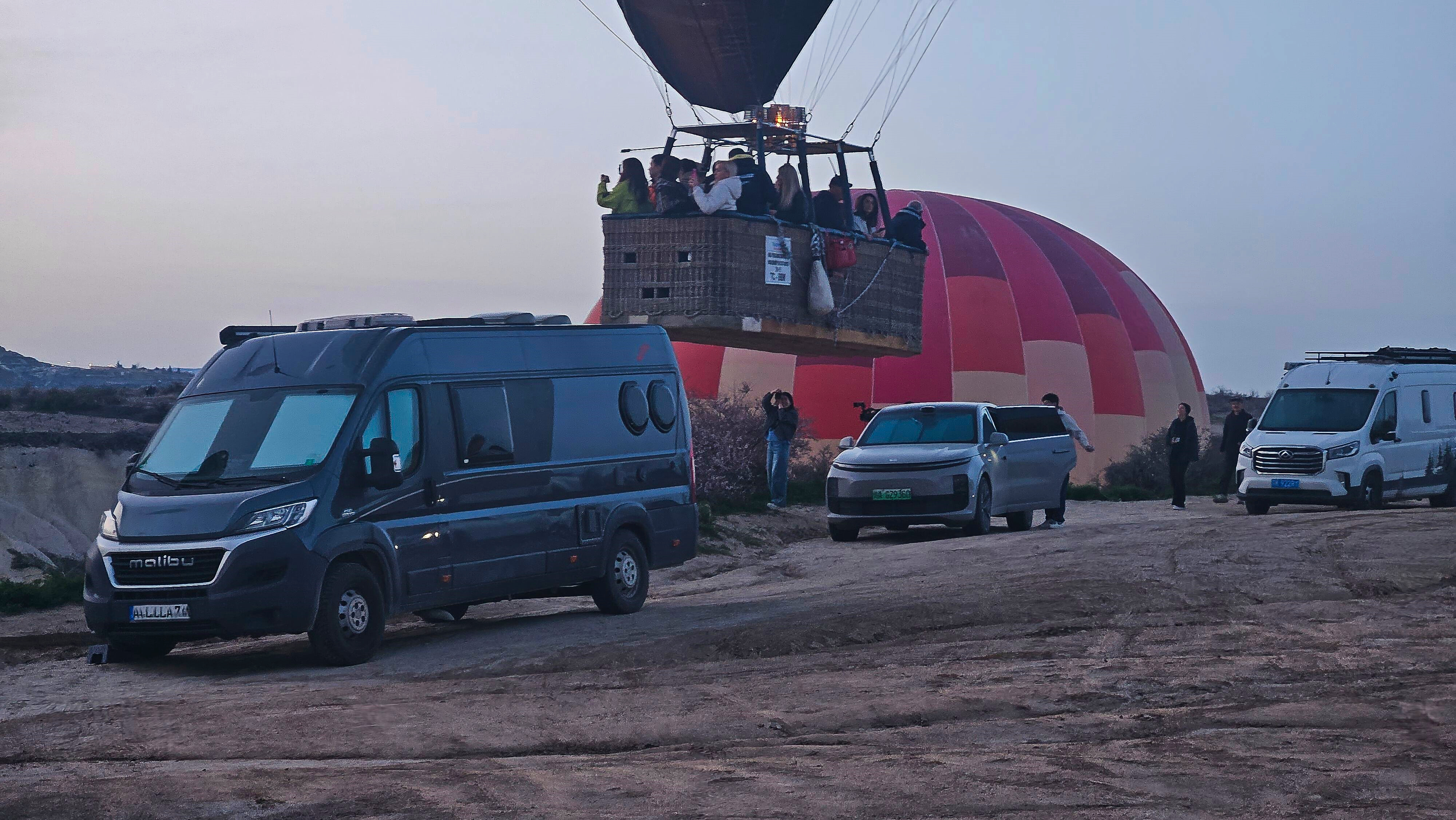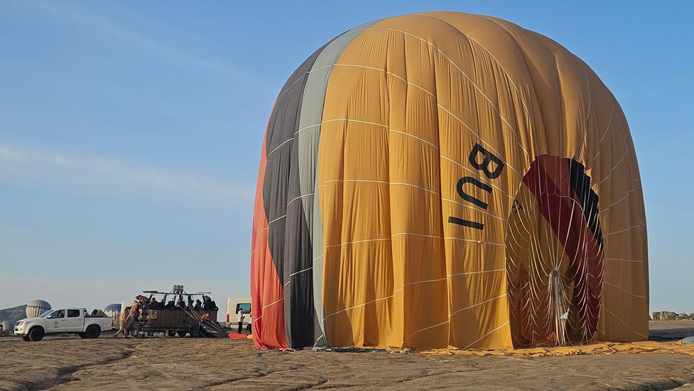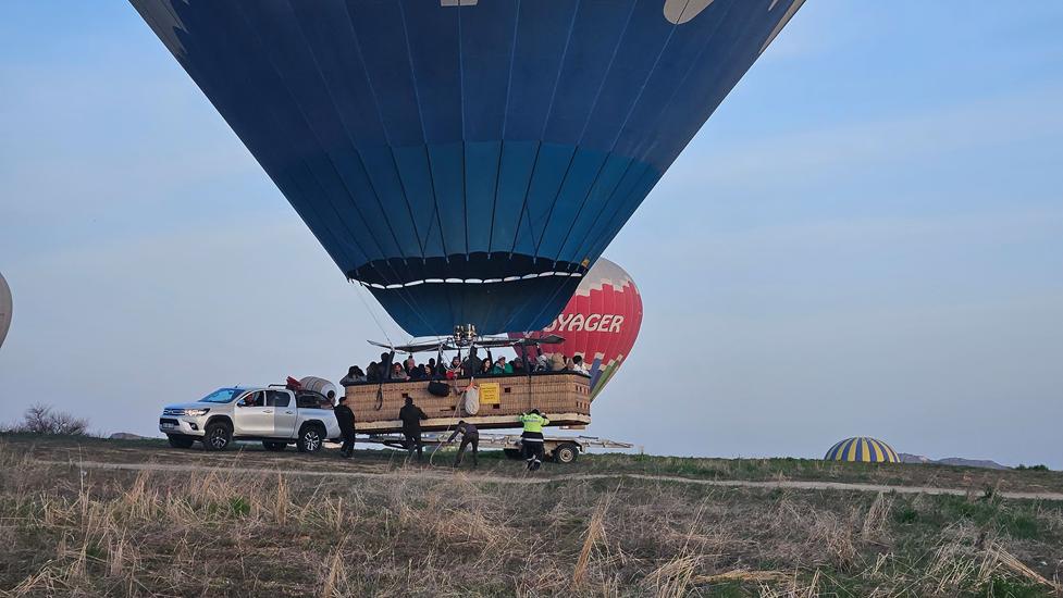 Am nächsten Tag standen wir wieder um 5.30 Uhr auf, aber es war auffällig still. Die Ballone fliegen nur bei geeignetem Wetter. Wir fragten uns ob die Flüge heute ausfallen? Um 5:45 Uhr schauten wir raus und oh Schreck, der Himmel war bereits voller Ballone. Ein paar senkten sich bereits in das Tal. Wieder schnell raus um das Spektakel anzusehen. Die Körbe waren so nah, dass wir uns zuwinken konnten und uns einen guten Morgen wünschten. In der Tat das war er. Dieses Mal kamen die Fahrzeuge mit leerem Anhänger. Sollten die Ballone tatsächlich heute hier landen?