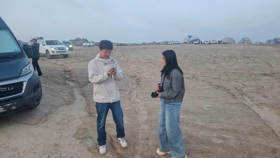 Mehrere Fahrten nach dem Navi zum gewünschten Platz scheiterten, entweder kamen wir im Tal, oder auf einer falschen Anhöhe an. Immer kamen uns Gelände-Jeeps entgegen. Der Ducato meisterte brav die steilen Wege. Letztlich fanden wir den Weg zum Platz. Die Sandstraße war sehr schwierig zu fahren. Tiefe Wasserrillen und Löcher mussten umfahren werden. Einmal blieben wir sogar fast stecken. Letztlich kamen wir gut durchgeschüttelt an. Dieser Stellplatz war uns wichtig, da die Ballone von dem Platz starten oder landen. Es ist notwendig nur am Platzrand zu parken.