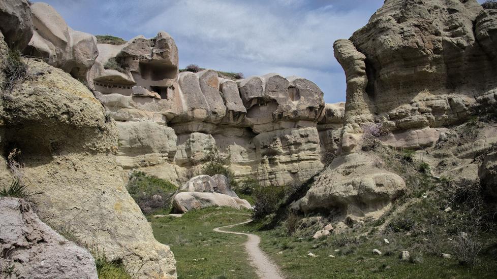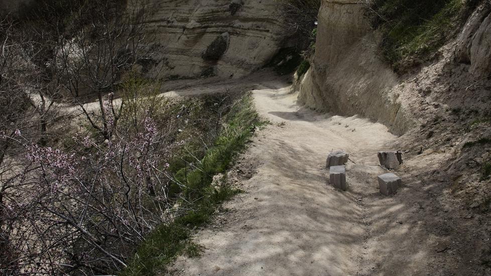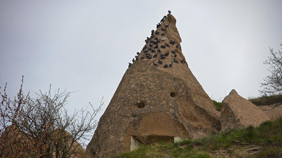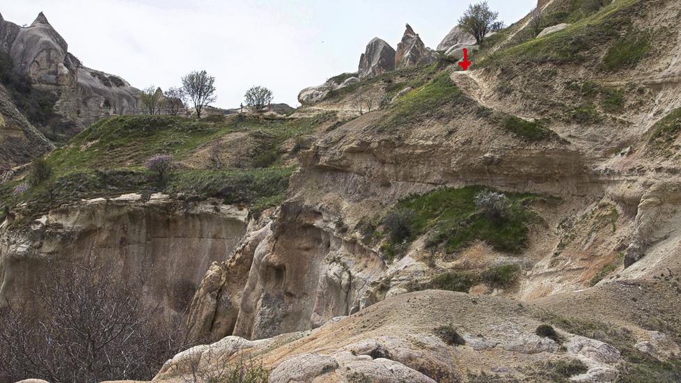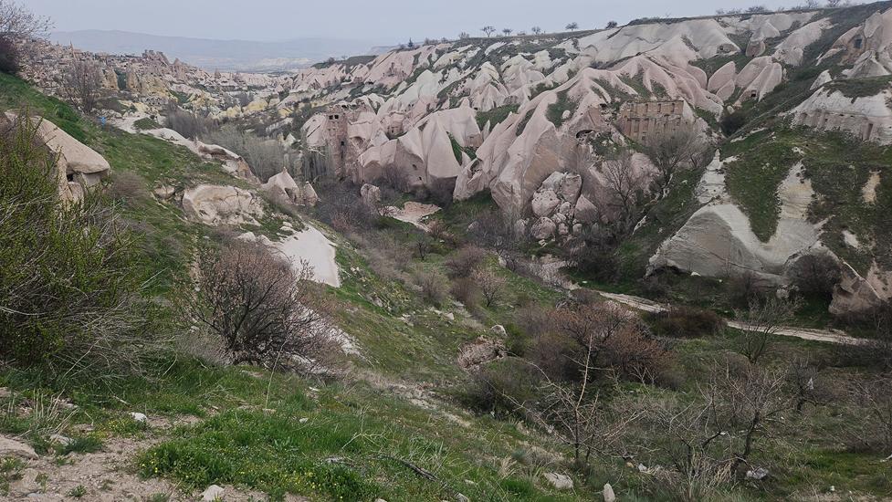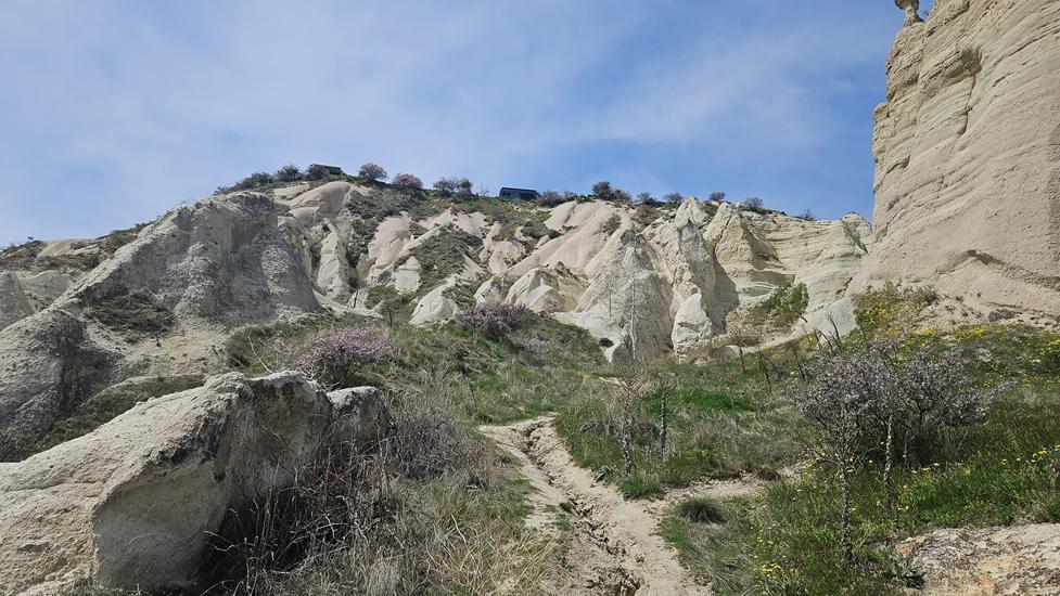 Eine interessante Wanderung führt durch das Pigeon Valley bzw. Güvercinlik Vadisi. Diese Wanderung hat eine leichte Einstufung und führt von Uchisar bis Göreme. Den Kasten parkten wir in Uchisar 500m vor dem Einstieg. Via Treppe ging es runter in das Tal. Zunächst wanderten wir auf gut begehbaren und meist flachen Wegen. Dann ging es unmittelbar nach einem tiefen Canyon nicht mehr weiter. Die Wanderung wurde plötzlich anspruchsvoll, denn uns stand quasi ein Berg im Weg. Es stellte sich heraus, dass wir den Berg oberhalb umgehen mussten.
