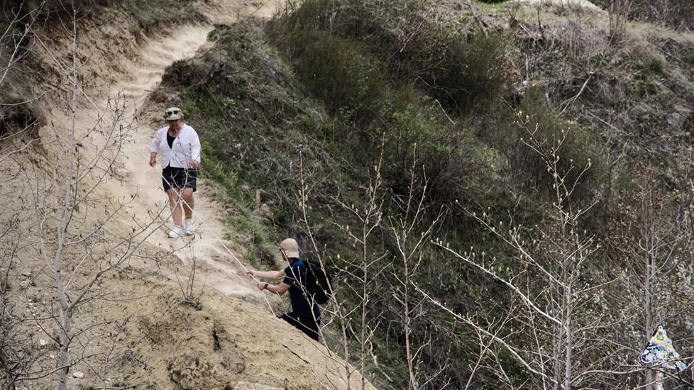 Wir begannen die Wanderung mit der Annahme in ca. 1 km wäre ein Trampelpfad in das Tal. Wir versuchten es, doch der Weg stellte sich auf Grund dem rutschigen Geröll als verletzungsanfällig heraus. So mussten wir einen 3,5 km langen Umweg nehmen. Endlich im Tal war es erhebend an diesen vielen Feenkaminen vorbei zu gehen. Immer wieder blieben wir stehen um die Schönheit dieser Kamine und Felsformationen zu bewundern. Was die Natur in diesem Tal geschaffen hat ist ein Wunderwerk.