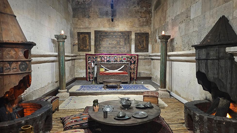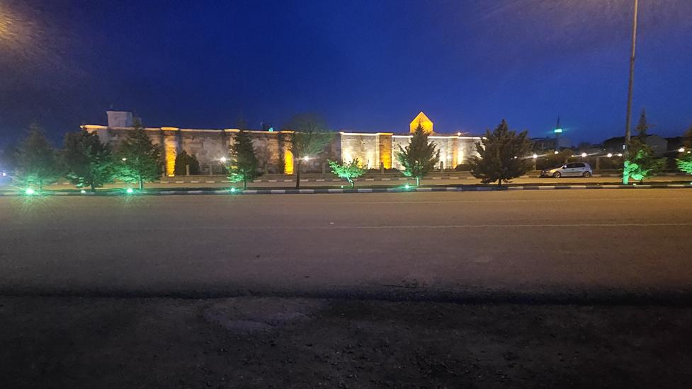 Das riesige Gebäude hat man ab 1229 erbaut. Es lag an der Seidenstraße und fungierte als Handelsknotenpunkt. Für Besucher stehen die Tore offen. Wir schritten durch den riesigen Eingang in einen großen Innenhof. In der Mitte stand ein verhältnismäßig großer Turm, der jedoch gesperrt war. Auf der linken Seite konnten die möblierten Gemächer des Sultans besichtigt werden. Auf der rechten Seite ist heutzutage ein Restaurant mit viel Kunst aus dem Orient an den Wänden und Pfeilern. Möglicherweise wurden an dieser Stelle schon früher die Gäste bewirtet. Im hinteren größeren Teil hatte man die Gäste untergebracht. Es ist eine riesige Halle mit 5 Säulengängen. Die Karawanserei ist top restauriert und bietet einen guten Einblick in die damalige Zeit.