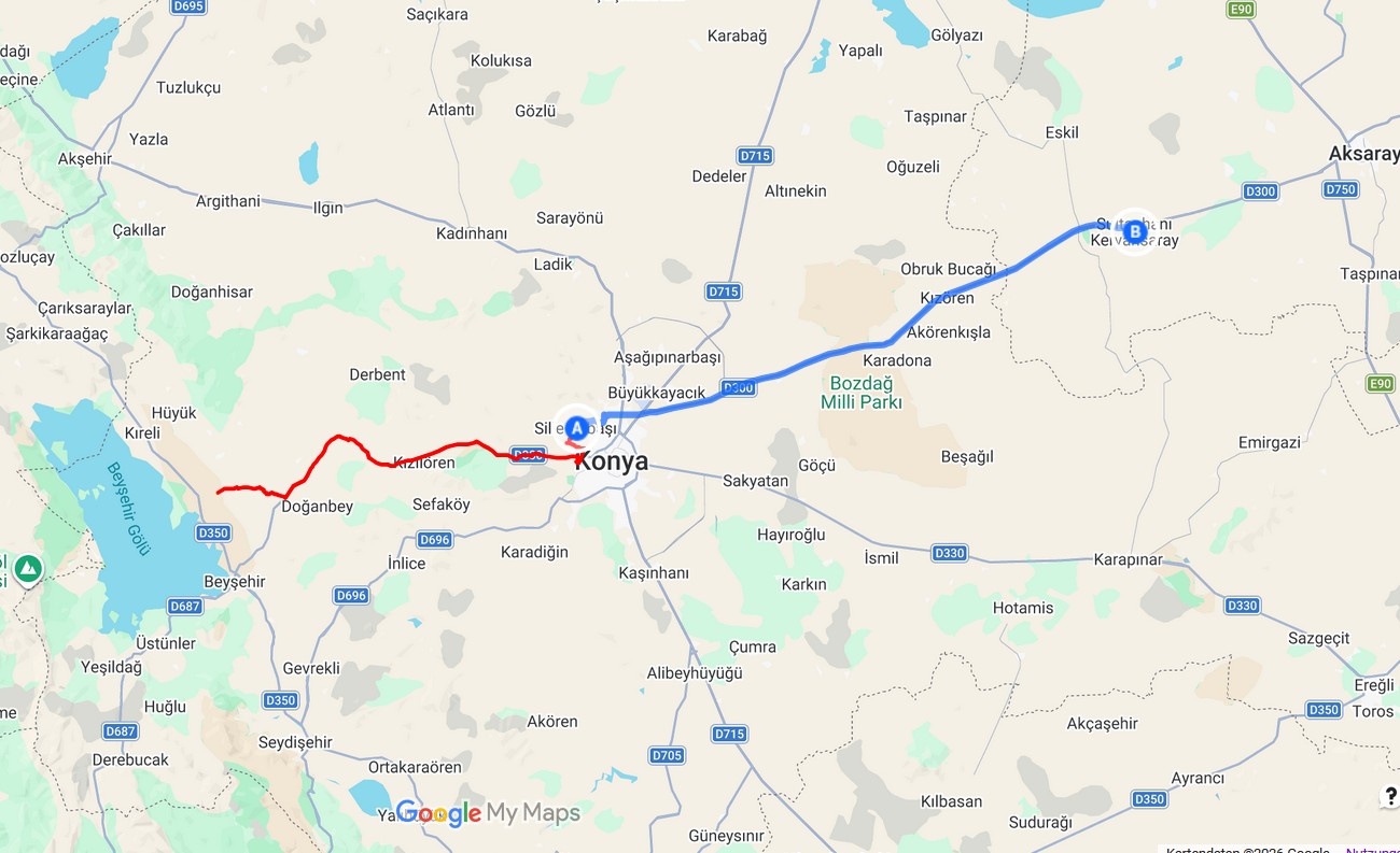 Strecke: Sultanhani– Sille: 90 km+Sultanhani: 110 km , 10 Grad leicht bewölkt