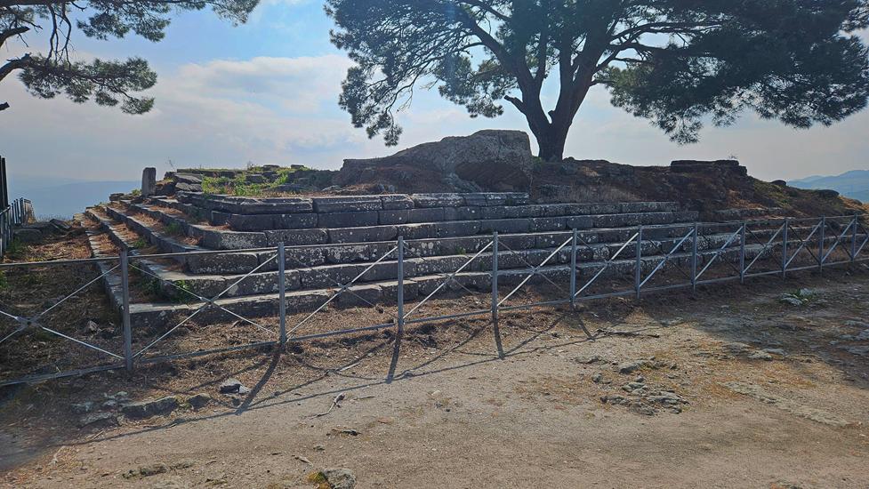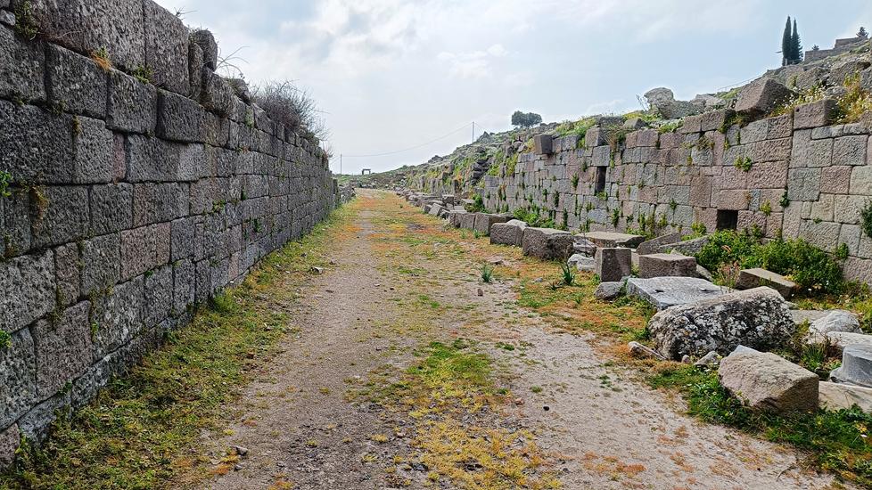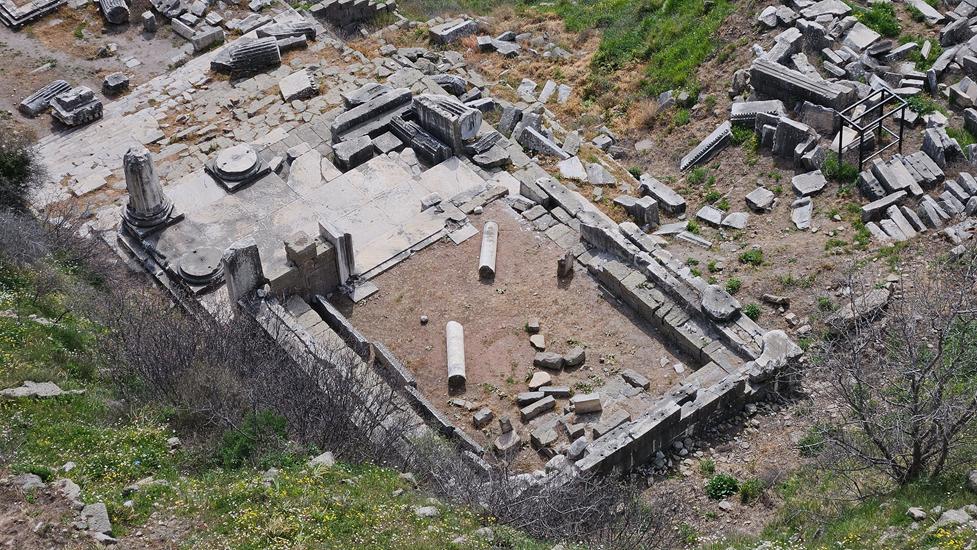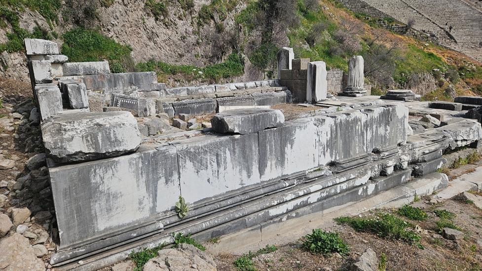 Der Route folgend erblickt man zwischen Plateau und Dionysos Tempel, den Zeus Tempel. Von diesem Tempel stammt der Alter der im Pergamon Museum in Berlin steht.