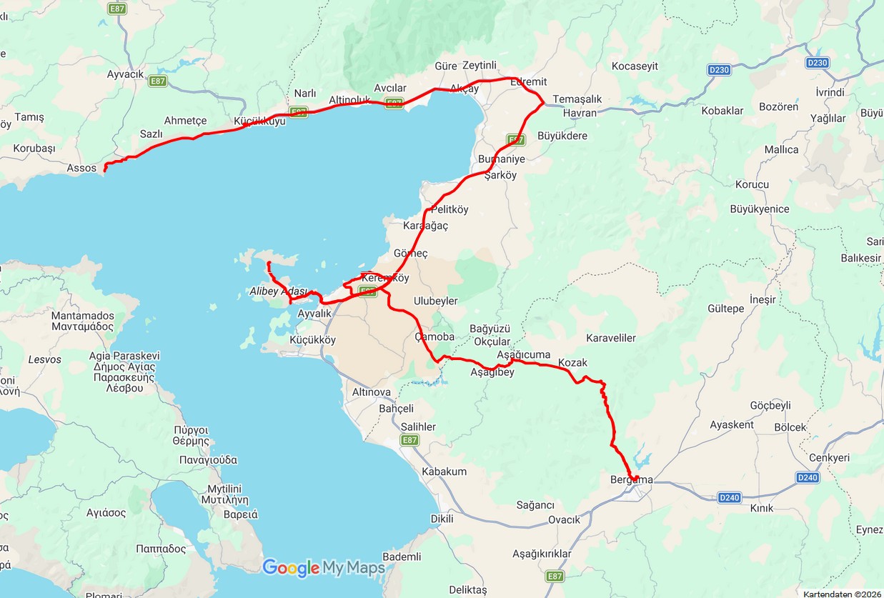 Strecke: Pergamon– 145 km + 100 km, 14 Grad, bewölkt und sonnig