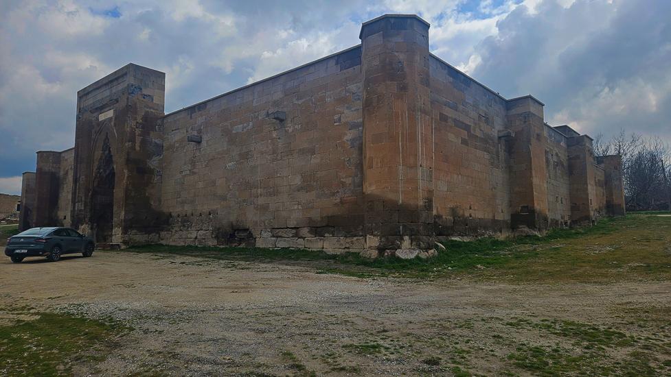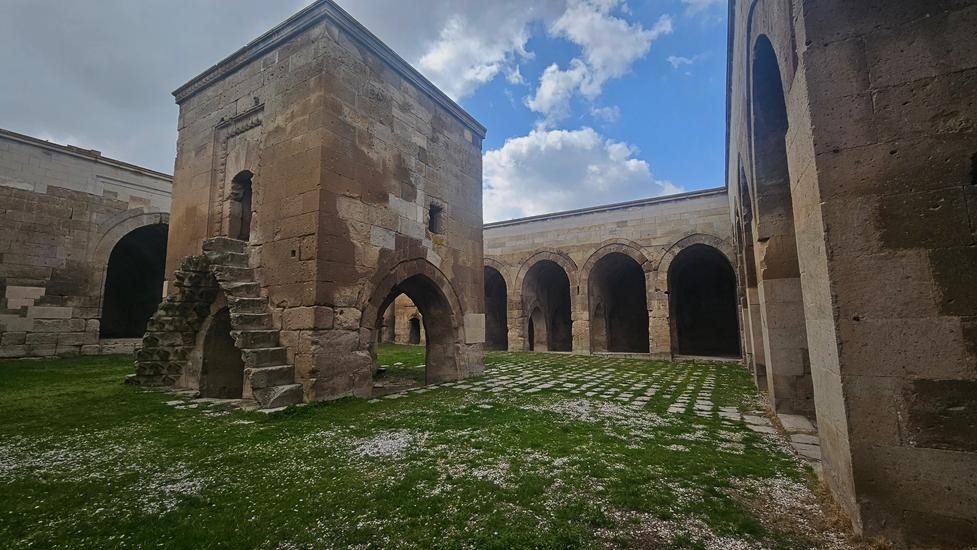 Nach einer kühlen Nacht ging es auf einer 4-spurigen Straße in Richtung Ihlara Tal. Bis zur Stadt Aksaray war so weit das Auge reichte eine ebene Landschaft zu sehen. Wieder sahen wir bewässerte Weizenfelder und karge unbewässerte Böden. In Ağzıkarahan steht eine weitere Karawanserei. Dieses Gebäude ist kleiner als Sultanhani und nicht touristisch aufgeputzt. Dennoch wurde ein geringer Eintritt fällig. Wir fanden die Karawanserei sehenswert. Während am Morgen in Sultanhani bereits 8 Busse parkten, befanden sich in dieser Karawanserei lediglich 3 weitere Personen.