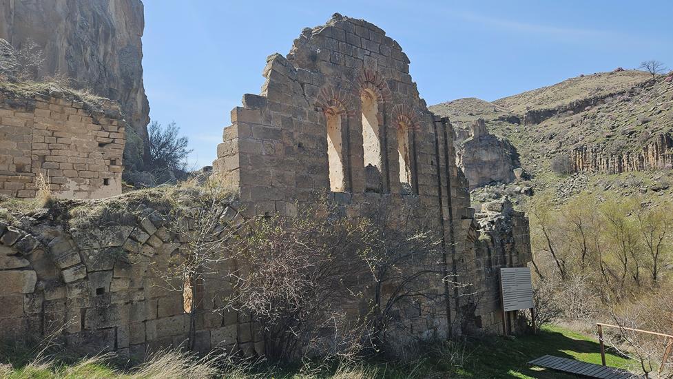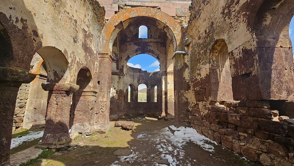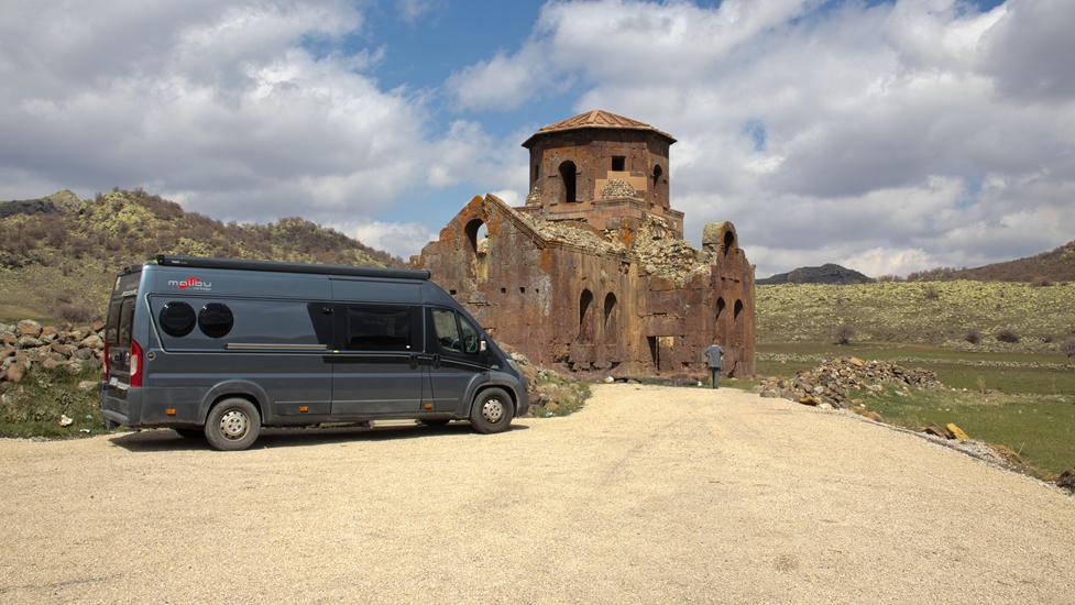 Wir erkundeten die Gegend weiter. Ganz in der Nähe steht eine orthodoxe Ruine aus dem 5. Jh. an der wir möglicherweise übernachten wollten. Die kleine Kirche war leider in einem schlechten Zustand, aber dennoch schön anzusehen. Ausser der Kirche war weit und breit nur Ackerland. Die Kirche steht auf 1770m und es lag noch etwas Schnee. Ungewohnt in der Türkei, es gab an der Kirche kein Internet. So ohne Internet wollten wir nicht bleiben. Es war mittlerweile schon spät und es ging zurück nach Ihlara zum dortigen Eingang und zum übernachteten auf dem leeren Parkplatz.