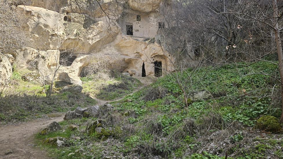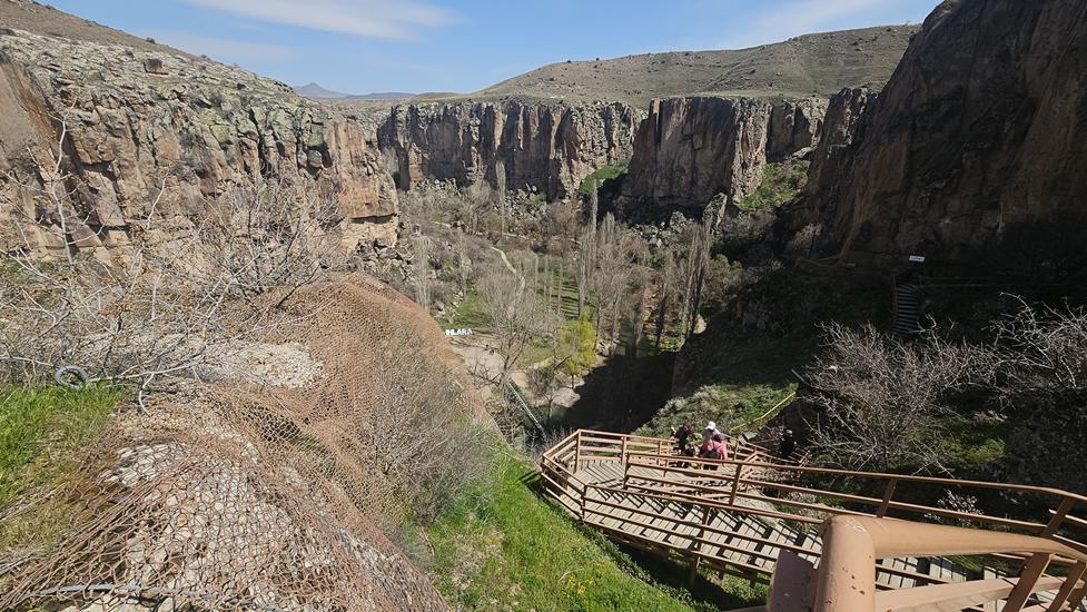 Am Morgen hatten wir sonniges relativ warmes Wetter. Zunächst haderten wir, ob uns der teure Eintritt ins Tal wert sein mag. Anderseits waren wir einer netten Wanderung bei diesem Wetter nicht abgeneigt und so ging es los. Um 10Uhr schienen wir an der Kasse die Ersten zu sein. Im stolzen Eintritt ist immerhin die Selime Kathedrale enthalten. Zunächst ging es eine steile lange Treppe hinunter. Im Tal sind 25 Kirchen zu besichtigen, die allerdings nicht alle zugänglich waren. Unten angekommen wählten wir den linken Weg am Fluß entlang in Richtung Belisırma.