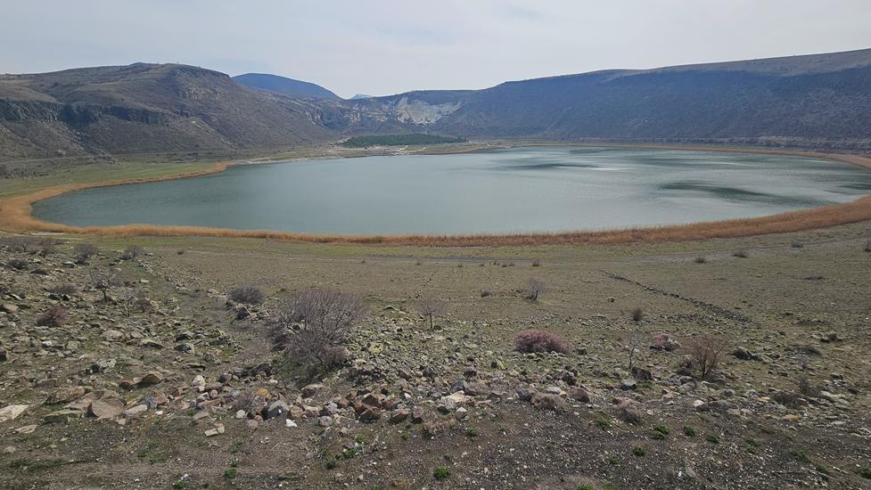 Auf dem Weg nach Kappadokien liegt der Narlıgöl Kratersee. Es ist ein vulkanischer See ca. 30 km vom Ihlara Tal entfernt. Merkwürdigerweise fahren viele Busse diesen See an. Wir dachten ein kurzer Blick kann nicht schaden und so machten wir ebenfalls diesen Abstecher. Der See hat smaragdgrünes Wasser und die Form ist herzförmig. Umrahmt wird er von vulkanischen Bergen.