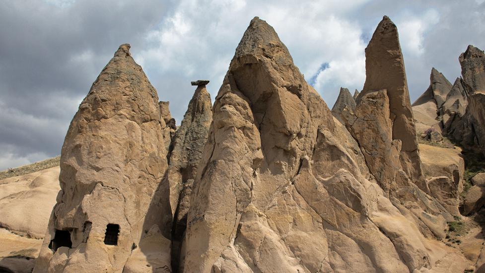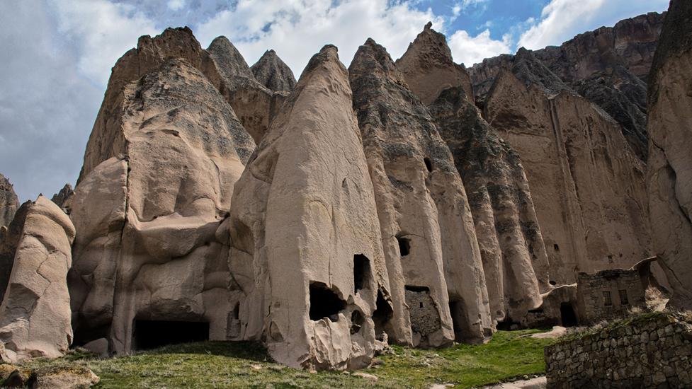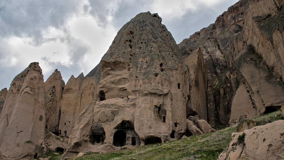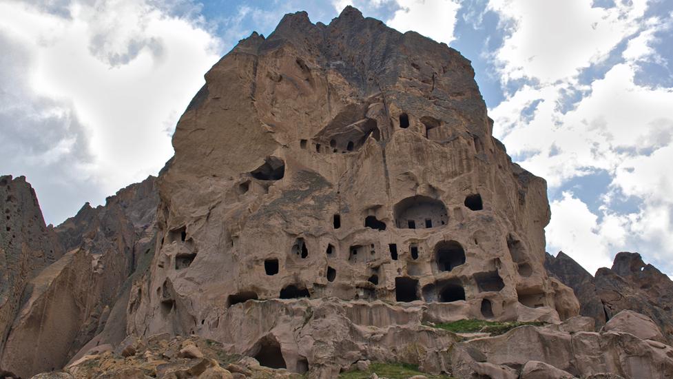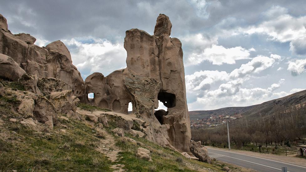 Das nächste Ziel peilten wir mit der Ortschaft Selime an. Die Landschaft änderte sich zusehends. Mittlerweile sahen wir wieder schneebedeckte Berge und die Straße folgte der bergigen Landschaft. Interessant in Selime ist die sogenannte Selime Kathedrale, dies ist ein Berg mit Felsenwohnungen. Um diesen Berg sind weitere Wohnungen in den Felsen geschlagen. Am Berg waren wir die einzigen Personen, die diese wunderschönen Felsformationen besichtigten. Wir wussten nicht, dass die Touristen auf der anderen Seite der Kathedrale waren.