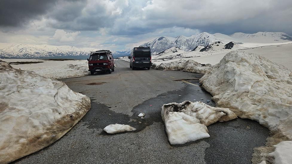 Mit 4058m ist der Süphan Dagi der höchste Berg am See und die Nr. 4 in der Türkei. Am riesige Vansee der 7mal größer ist als der Bodensee hatten wir bereits 2024 kurz Station gemacht. Die Wetterprognose hatte es angekündigt, der Winter in Tatvan war noch nicht vorbei. Aber was kann es schöneres geben, als diesen See mit den schneebedeckten Bergen zu sehen? Unser erstes Ziel sollte der Kratersee Nemrut Gölü auf 2.250m sein. Wir hatten es bei der Anfahrt befürchtet und es ist leider eingetreten, denn zum 2. Mal konnten wir den Krater nicht erreichen.