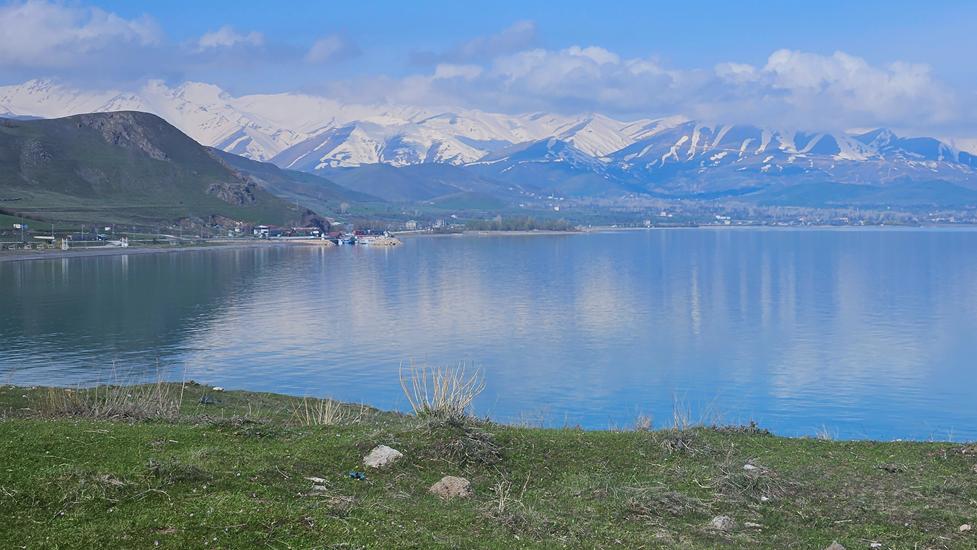 Wir wollten in die Berge nach Tatvan am Van See. Die Fahrt dahin war ein Erlebnis. Zunächst ging es einmal mehr an einer fruchtbaren mit Ackerbau geprägten Landschaft vorbei. Viele Plantagen mit Feigenbäumen säumten den Weg. Die Berge wurden immer weißer und die Schneeschmelze hatte längst eingesetzt. Überall stürzten Bergbäche in die überquellenden Flüsse. Teilweise wähnten wir uns wie in Norwegen. Wir erreichten den größten See in der Türkei auf 1650m, der zugleich der größte Soda See der Welt ist. Eine Naturschönheit umrahmt von hohen Bergen.