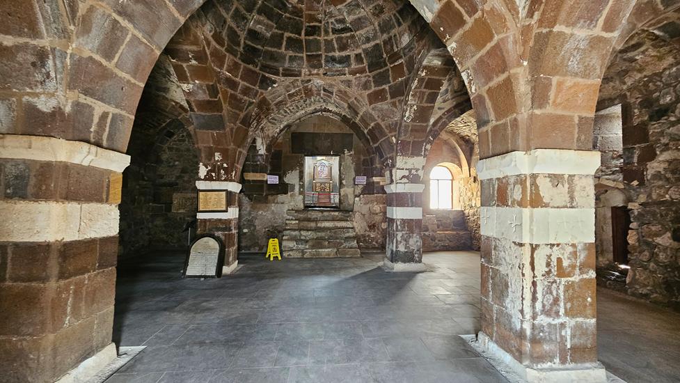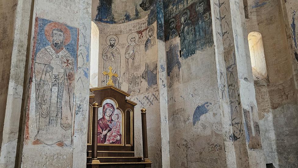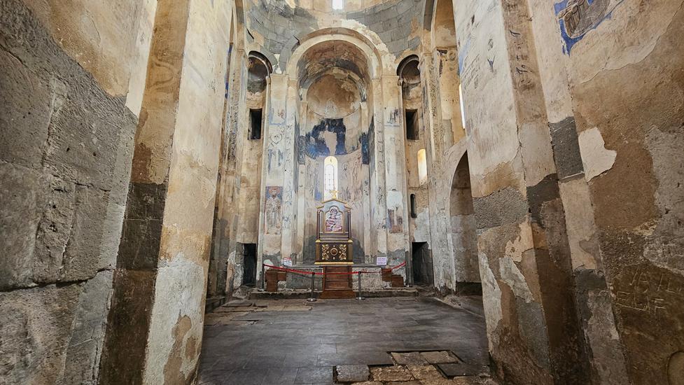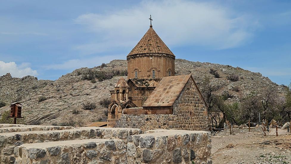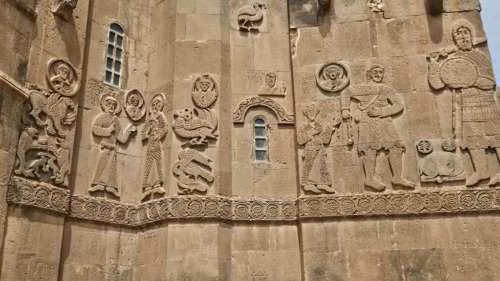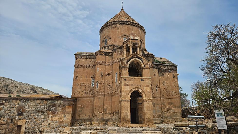 Am nächsten Tag buchten wir uns in ein Schiff zur Insel Akdamar ein, um die dortige armenische Kirche zum Heiligen Kreuz anzuschauen. Das Schiff war an diesem Morgen gut gefüllt. Nach kurzer Zeit erreichten wir die Insel. Die zwischen 913 und 992 erbaute Kirche ist mit vielen Reliefs im äußeren Mauerwerk verziert. Diese zeigen Biblisches, wie die Vertreibung aus dem Paradies. Im Inneren ist die Bauweise wie die hohe Kuppel und die Säulen beeindruckend. Wandmalereien aus dem Jahr 921 sind sogar teilweise gut erhalten.
