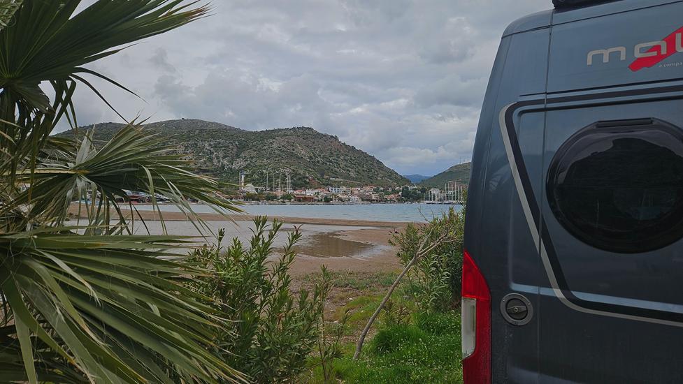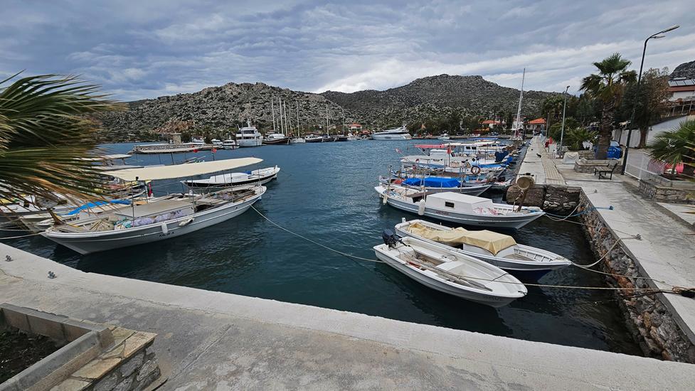 Noch einmal ging es über die Berge, um in einen Vorort von Bozburun zu kommen. Diese kleine Ortschaft hat ebenfalls einen Yachthafen. An manchen großen Yachten wurde fleißig gearbeitet. Bei unserem Dorfbesuch konnten wir eine kurze Strandpromenade mit ein paar Restaurants entdecken. In 2 konnten wir paar einheimische Männer entdecken. Wir nutzten den öffentlichen Parkplatz zum Übernachten. Dieses Mal waren wir mit 2 Wohnmobilen aus der Türkei auf dem Platz.
