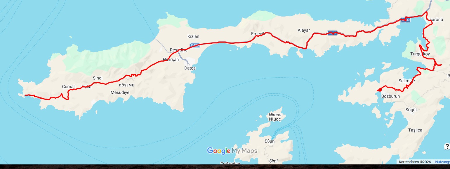 Strecke: Bozburun– 125 km, 16 Grad wechselhaft